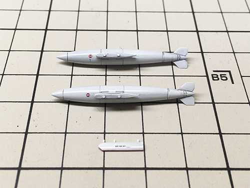 ミサイルの黄色帯デカールを貼り付け。