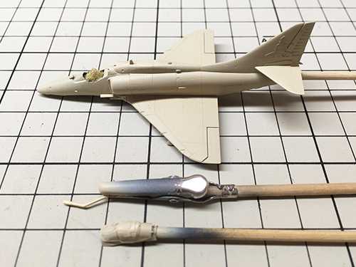 迷彩境目の調整と鼻先とコクピット部分と~他細かい所を筆塗り。