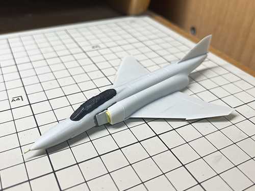 マスキングをして セミグロスブラック を塗装したキャノピーパーツを接着。
