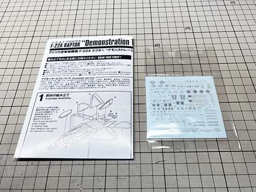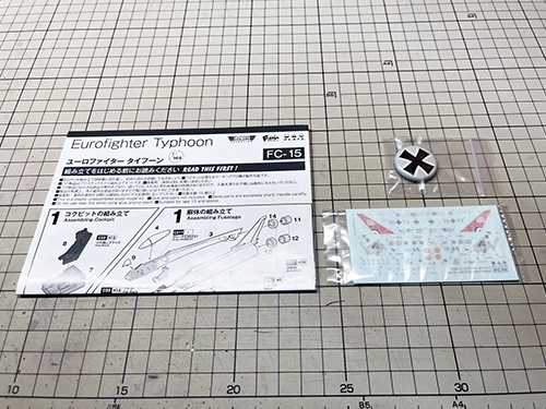 2機分のキットと説明図とデカール、おまけの缶バッチが入っておりました。