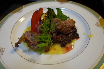 こんにちは。広島市内の観光地や、宮島の観光情報、広島県内の観光地をご紹介しておりますパークサイドホテル広島平和公園前の若旦那です。本日2月18日も冷え込んでいる広島です。今日はちょっと取材で竹原市からフェリーで大崎上島まで行ってきました。その途中、山陽自動車道を東に走っていると、、、高速道路には雪はなかったのですが、、その周辺の山々にはたくさんの雪が!もう銀世界といっていいくらいに真っ白になっていました!ノーマルタイヤでびくっとしましたが、なんとか戻って来れました!またブログでご紹介いたしますね。さて、昨日から阿津満さんの雨後の月の会をご紹介させていただいておりますが、その続きでございます。雨後の月のおいしい搾りたての日本酒をいただきながら、一緒に阿津満さんのお料理をいただきました。その中でジビエヨコタさんから提供された猪肉がもうすんばらしくおいしかったです。ジビエヨコタの代表の横田さんがこの日提供されるジビエについて説明をいただきました。1月に狩猟された猪肉を20日間以上も熟成させた猪の右後ろ足のモモ肉を持ってこられたとおっしゃっていました。正確には27日間だったとおもいますが、冷蔵や冷凍を一切せずそのままの状態で最高の熟成肉にして提供していただいたそうです。そのお肉を阿津満さんの大将の凄腕によってこちらのお料理にしていただきました。まず香りがいいですね~。このお肉を見ただけでどこの部位かわかる方もいらっしゃったようです。すごいですね。同じ猪のお肉ですが、後ろ足の中でも部位がちょっと違うそうです。一口いただくと、、、衝撃、、、が走るおいしさ!左側はとってもやわらかくて少し脂がのっていてとっても上品なお味!全く臭みもなく、ほんと驚きでした。つづいて右側のお肉をいただくと、、、こちらは脂が少なくって少し歯ごたえを残してある感じでおいしい~~!つけ合わせのお野菜も素晴らしいお味でした。そしてソースも最高においしかったです。パンをもらってソースをつけて食べたいという声が聞こえたほどです。そして、最後、、、ご一緒した席の方から、、、「もう、、、牛肉が食べれないかもしれない、、、次からこの猪肉じゃないと、、、、」という声まで。おいしいってすごい力を持っています!阿津満広島市中区本川町2-5-19082-231-3504