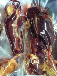 昨日の猟で、マガモ、コガモが取れた!と連絡が入りさっそく今日受け取りに