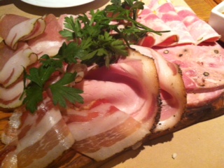 つづいて加工肉の盛り合わせをいただきました!加工肉というネーミングがわくわく感ありますね。要はサラミやハムなのですが、いろんな種類があるんですね~。ボリュームたっぷりでこれまた赤ワインによくあいます!