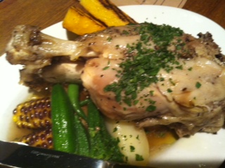 そしてそして、、、登場したのがもみじ豚のアイスバイン!このボリュームみてください!びっくりする大きさです!足の部分でしょうか?ナイフとフォークで切り分けようとすると、、、うわ!ほろほろ!一口いただくと、、、、うわ!おいしい~~~!塩味がたまりませんね!これまた赤ワインにありますね!