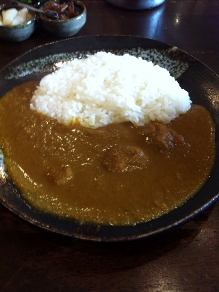 さて、お昼時間をちょっと外したのでお店に到着した際は貸切状態!ゆったりカレーをいただきます。メニューをみて、今日は、、、、チキンカレーにしました!こちらのチキンカレーは結構辛めなので、夏だとかなり汗がでます。