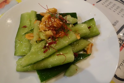 まずはきゅうりをいただきながら、生ビールで乾杯~!2013年の最終日というのにもかかわらず、紅白歌合戦も見ないで餃子を食べている方が多いのにびっくりしながら、私たちももれなく餃子をお願いしました!