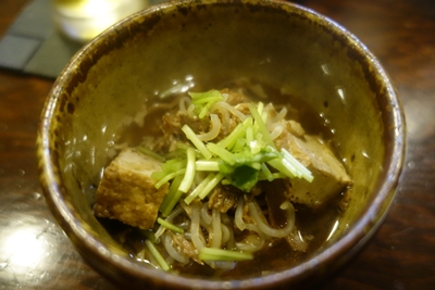 この日もまずは先付けから!厚揚げの煮込みですね!最近これにはまってしまっております!体もあたたまっておいしい!