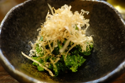 今日は寒くなってきたのもあって鍋を特別にお願いしていたので一品料理は少しだけにしておかないと!ということで、もずく酢、菜の花のからし和えをまずはお願いしました~!これだとおいしいし、お腹にもがっつりこないし!いや~どちらも美味ですね~!おいしい~!