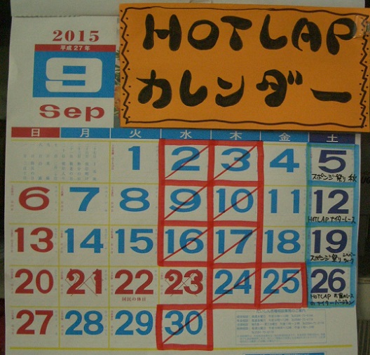 こんにちは HOTLAPです8月のカレンダー 諸事情により変更がございましたので よろしくお願いいたします13日が 木曜日ですが 営業させていただきます11日 と 18日 火曜日ですが お休みいただいていますよろしくお願い致します。前のブログのカレンダーも 改正版に換えておきましたちょこちょことすいません