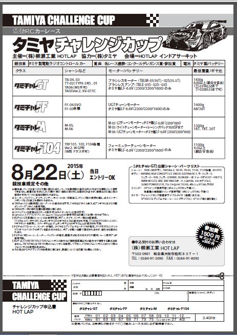 こんにちはー HOTLAPですー8月22日に 1日限定コースでの ナイタータミチャレいっぱい参加してくださりありがとうございます代表権付きタミチャレ 大盛り上がりでしたね毎度 夜遅くまですんません では お写真 見てね 次回 タミチャレGT と FFは 代表権ナシで 9月26日にあります ナイターです代表権付き 全国統一タミチャレは 10月25日 日曜日 お昼のイベントですよろしくね