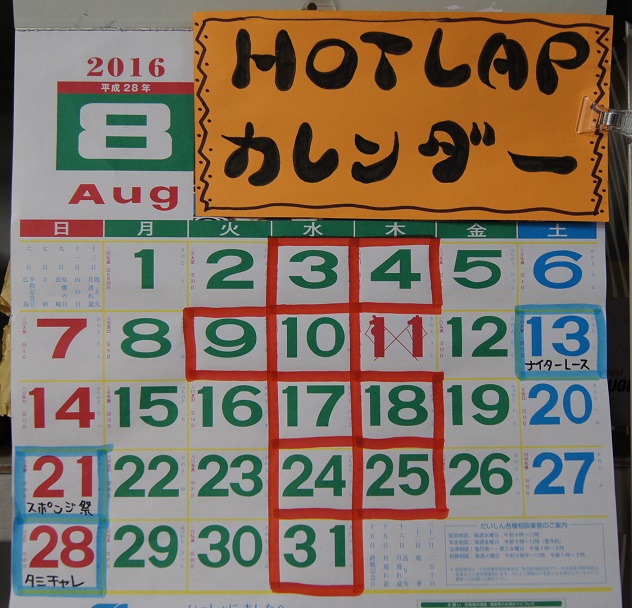 こんにちはー HOTLAPですー8月のカレンダー 見てくださいね13日 土曜日 HOTLAPナイターレースがございますーカテゴリーは 5つミニクラス 1/12 7500rpm 1/10 7500rpmそして GT500ストックレース GT500 今回でラストレースにさせていただきます5年楽しませていただきました いったんお休みいただきます最後のGT500ストック よろしくお願いしますちなみに このような形で GT500 盛り上がっています気になる方はー スタッフまで(^O^)そして 来月より 4カテゴリーになりまして今回より TTカップが タミチャレZEROになりますレギュは こちら ↓いきなりですいませんが よろしくお願いします。TTカップマシンは 電池をリフェに ギヤ比を変更 でよろしくね7時スタート お昼から練習するぜ とゆって頂ける方ー お得なレースパックあり参加賞 必ず当たる景品あり お気軽にご参加よろしくお願いします(´∀`)21日 日曜日 早始まりの スポンジ祭を開催ですー2時間早めの 9時コースオープン 11時半レーススタート1/12モデファイと 1/12ストックのイベント4時くらいには 終了予定2時間早終わりの 20時までの営業でございますー 終了後は 通常営業になりますので また 遊びにきてくださいね早始まり 早終わり 気に入っています( ⊙‿⊙)お気軽に ご参加よろしくお願いいたします28日 日曜日 タミチャレが(代表権付き)がございますー27日 土曜日のナイター予定でしたが 28日 日曜日に変更になりましたすいませんm(_ _)m2時間早めの 9時コースオープン 11時半スタート 6つのカテゴリーGT FF M ZERO F1 ZEROルーキー です4時くらいの 終了予定2時間早終わりの 20時までの営業終了後は 通常営業になりますので また 走りにきてくださいねお気軽に ご参加よろしくお願いしますヽ(・∀・)ノでは 8月 異常に暑いですが 楽しみましょうー