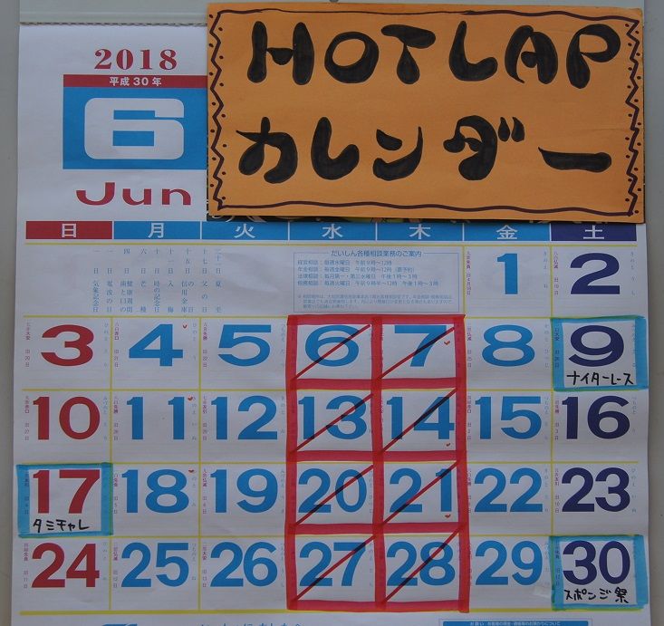 こんばんはー HOTLAPですー6月 もう6月! カレンダー見てくださいねまず 9日 ナイターレースがございますーカテゴリーは 4つ プラス 1おもしろい! トレーラーヘッドクラスほんとよく走る 7500rpm 1/12GTクラス大人気 7500rpm F1クラス大迫力 ツーリングカーノンブーストクラスプラス トレーラーヘッドオーバルレース ですよろしくね17日 日曜日 タミチャレがございますー早始まりの早終わりDAY 雨天は 室内コースで開催します 5月に続き 6月も外コース使用でのタミチャレです8月の外レースは 都合により止めましたので 外は今年最後ですカテゴリーは 3つ (雨の場合 TRFクラスが追加されます) タミチャレGT タミチャレF1 タミチャレM です12月の代表権かかっています よろしくお願い致します6月30日 土曜日 スポンジ祭がございますーオープンより 貸切イベント 夕方よりレースですねカテゴリーは 3つ1/12 モデファイクラス1/12 ストッククラススーパーフォーミュラクラス ですよろしくお願い致します。では 6月 よろしくね(^_-)-☆