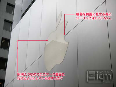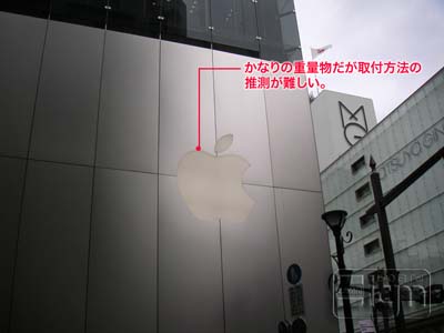 そもそもこれだけの重量物であるアップルロゴマークをどのような金物を使用して落下しないように取り付けしているのかが、推測しにくい