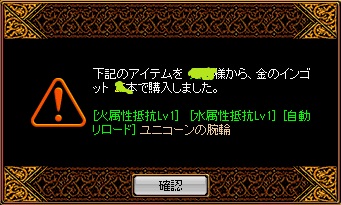 こんにちは。かなり更新の間が空いてしまいましたが・・昨日ギル戦がありました。お相手は有限会社サミーさん有限会社サミーの皆様対戦ありがとうございました。お尻記録。今日も今日とて徒然なるまま天上界特急便ですたい。これで天上8回目です!HPのゴールは見えてきました!昨日露店でとんでもないものを発見しました。それがこちら。こ れ は い い も の だ !!と思い・・鏡させてもらえるのかすらわかりませんでしたがこのIDでは地下界に通っているキャラがいないので・・そう・・ですね・・ロト買いました。結果は現実はこんなもんですよね。もう・・どうしようもないので地下界に行けるキャラを急遽育ててまいります!!!がんばりまっす!来年は鏡三昧な1年にしまっす!シリカブレッス!!!!!サッ