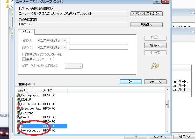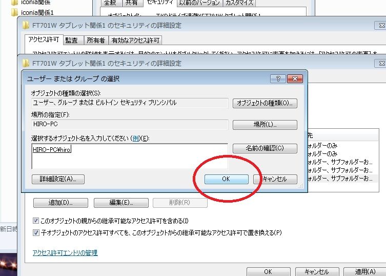 選択するオブジェに自分のPC名が追加されてるのでOK押します