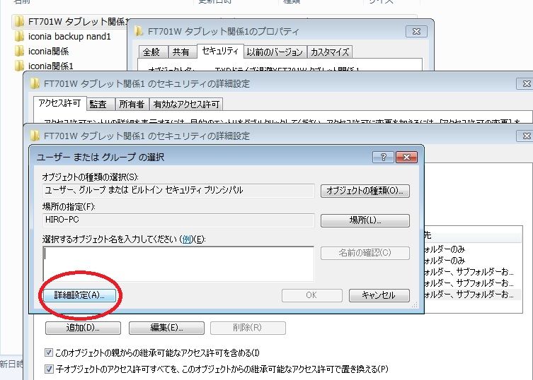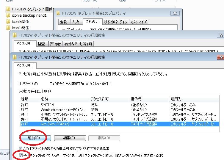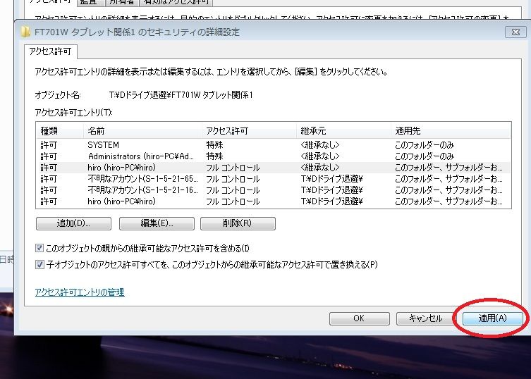 HDD全域でこの症状出てたらHDDのプロパティから同じようにやれば全部いっぺんに出来ると思いますよ。