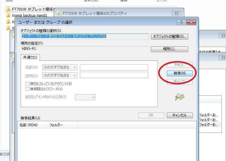 検索を押して自分の名前(PC)を探します。見つかったらカーソル合わせてOK