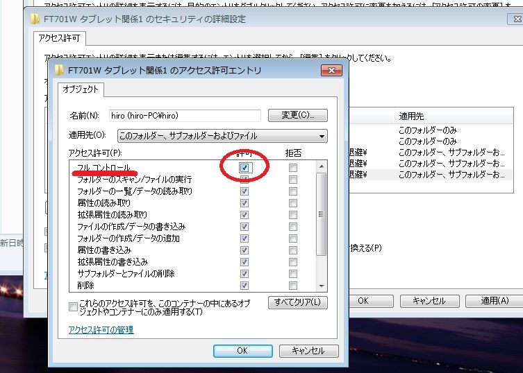 フルコントロール可になってればOKでアクセスも中身の編集も可能になります。