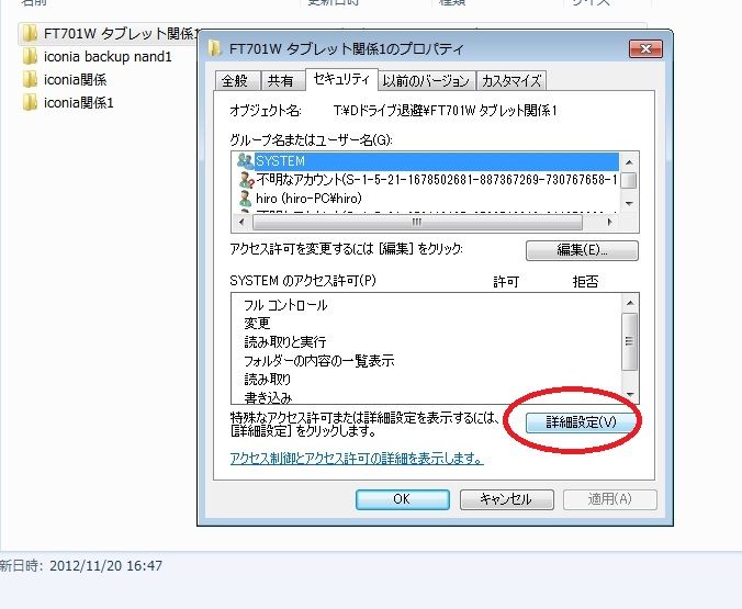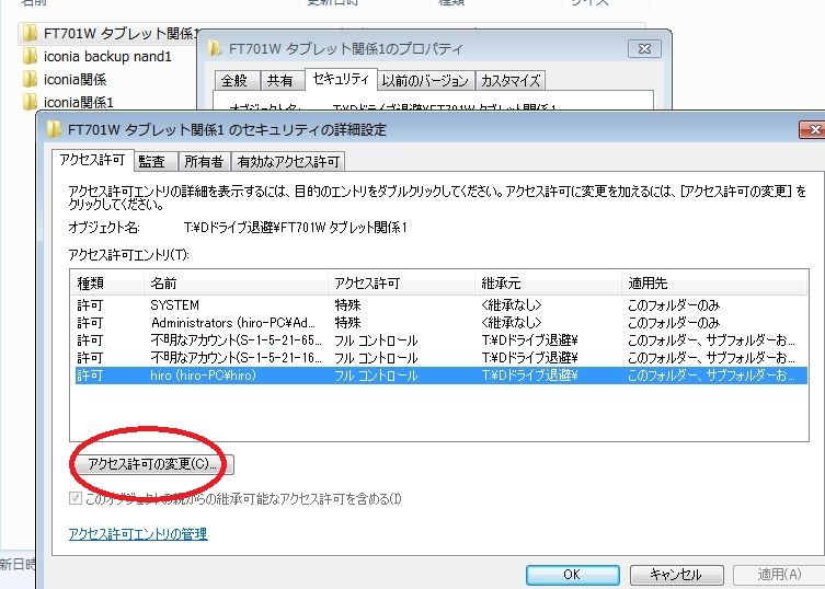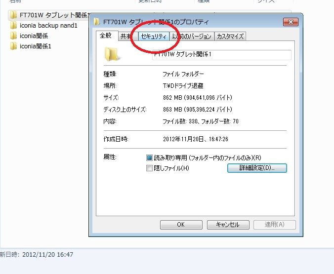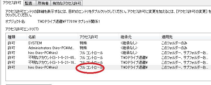 それでは早速ですが・・・アクセス出来なくなったフォルダーのプロパティにアクセスします。