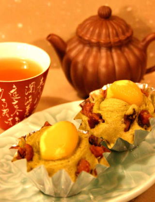 茶館でも、土日祭日限定メニューの秋栗と胡桃入りの緑茶入り蒸しケーキとお茶のセットをお出ししています。茶館のお料理は全て厨房で手作りしているんですよ。ぜひ、機会がありましたら、茶館へもいらっしゃってくださいね。