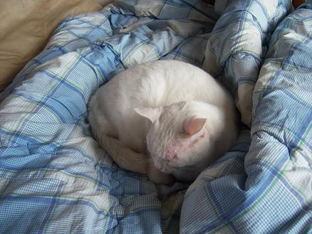 Leadの「Versus」祭りをちょっとお休みして昨日のうっぷん晴らしをごめんさない。昨日、娘と折り畳み自転車をバイト先に届け某大型ドラッグストアに買い物に寄りました。トイレットペーパーやシャンプーおしゃれ着洗剤や柔軟仕上げ剤、下部尿路疾患用キャットフード(10歳以上・く~たん用)毛玉対策キャットフード(マシロ用)と猫缶料理に使う日本酒や牛乳・納豆・豆腐・砂糖などあれこれ選んでから、そう言えばシミの目立つ顔にはコンシーラーを使いなさいとピーに言われたので化粧品売り場に移動してコンシーラーを探しているとなかなか見つからず、ついでにテスターを手に塗ったりアイシャドーの白と保湿剤を探していました。ほぼ毎日すっぴん生活なので化粧品は滅多に買わないため何が何やら分からずにあっちうろうろこっちうろうろ、戻ってうろうろ。うろうろし過ぎていたのかもしれませんが気付くと店員さんが横にいたり角から見ていたり後ろにいたり思い出す限りほとんど視界に店員さんがいて店員さんに聞いたら高いのを売りつけられそうで一人でそっと選ばせて欲しい私は化粧品コーナーの店員さんがやたら近くにいるもんだなと思っていました。そして20分掛けてようやくコンシーラーを見つけて選び、引き返して白い頬紅?仕上げ用の白いやつ(よう分からんので)を選び、保湿用に理解できるものが見つけられずに生ヒアルロン酸入りってのを選びました。それで隣にいた店員さんに化粧品のレジはここで清算しますか?と聞いたら普通のレジでも出来ますと言われたので一度に済ませたかった私は総合レジに向かいましたがそれにしても化粧コーナーの2人の店員さんがずっと近くにいた事に改めて気付いて気になったんです。家に帰ってからもずっと気になって気になって何度も何度も映像が巡るんです。化粧品コーナーの店員さんがあの時あそこにいた。あの時は隣にいた。その後向こうの棚の角から現れた。その後反対の角から現れた。その後後ろを通って行った。その後横を通って行った。その後向こうから見ていた。その後横にいた・・・・。全部映像で憶えているもんですから何度でもリピートして見てしまうんです。あんなに店員さんが始終近くにいるって初めての事でした。すご~~~~~く気になるので何が気になるのか考えてみたんです。あれって・・・・・・・。あれって万引きすると思われてて超警戒モードで私を監視していたって事ですよね?あれは私が万引きする現場を抑えようとずっと付け回していたって事ですよね?く、くそううううううう(′;ω;`)私は万引きは絶対しません!!!って言いに行ってやろうかなと思ったりして。でも一度店を出てからでは説得力がないですね。私鈍いからすぐに気付かないんです。後で気付くんです。く、く、くそうううううううヽ(`Д´)ノ 汚い言葉を使ってゴメンナサイ。くそおおおおおおおおううううううううヽ(`Д´)ノ高校生の時も沢山の教師に色んな都合悪い事の原因に祀り上げられてしまってすっごく悔しい思いをしていたのですが、あの時の理不尽な感情を思い出してふつふつふつふつと怒りがこみ上げて来てこれをどうしようぞ!!!とヽ(`Д´)ノまあね、今時エコ対策を全くしていない店で袋を持参していた私が怪しい人に見えたんでしょうか?袋を持参して下さいと表示されていなくても大概私はマイバッグを持参しています。特に車移動で大量に買い物が出来る時は保冷バッグなどの大きいバッグを持参しています。あの店で大きなマイバッグを持っている人が少ないんでしょうね。化粧品を万引きする人が多いんでしょうね。普段はそのチェーン店の塩釜店に行くんです。そこには息子っちの友人のお母さんがいていつも情報交流やらちょっとしたおしゃべりをするんです。ニコニコ可愛らしいお母さんなのでちょっとした交流も楽しみなんです。でもピーのバイト先は反対側なのでそのすぐ先にある店で買い物をしたんです。車があったので重たい買い物をしてついでに滅多に滅多に買わない化粧品を・・・。うううう。私はどこにいても絶対万引きはしません。高校生時代は担任から同級生達を見守るように言われて卒業間近で浮き立って万引きしているのを止めて品物をこっそり返したりしていたこの私が!!誰も見ていなくても神が見ていると信じているこの私が!!ううううこの私がぁぁぁぁぁぁ!!!!あの店の化粧品売り場には行かない事にしてでも一度宣言しに行きたい無駄な思いがあります。「大変なのは分かりますが、 私は絶対に万引きしませんから! あしからず」なんて捨て台詞を言いたい。あれ、捨て台詞になってない気が・・・。致し方なしですね。さて、癒しのマシロさんの写真を見てくすっと笑おうっと。これは遠い広島に行ってしまって無人のラーの部屋なのにマシロがよく一人で行って寝ている現場に遭遇した写真です。布団が乱れているのはマシロが時々ベランダに出たがるのですが今は寒いので窓は締め切って、マ