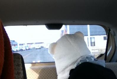 一昨日、車の後部座席に黄昏た白クマさんを乗せた。折りしも先週、堤真一氏のドキュメント?カナダ西北部に住む白熊の番組を見たばかりだったのでちょいと驚いた。この白熊はそこにしか存在しない貴重な白い熊でシロクマとは全く違っている白い毛の熊なんである。そして私の車の後部座席で後ろを眺める哀愁漂う白クマさんは帽子型の白クマさんで、なんだってそんなにバックシートにへばりついて後ろを斜めって眺めているのかと言うと、安い軽自動車のバックシートにはヘッドレストがないので頭が不安定になり、座席に横になるかバックシートに顔を押し付けるかが楽なのだそうだ。と斜めっている白クマさんはのたもうた(_≧Д≦)ノ彡この姿を運転席からルームミラー越しに見ると凄くシュールでたまらないんである。運転しながらなので集中的に見る訳にいかないため、全体を把握するように意識的に見るのでバックシートのちょい斜めに見える白クマさんはぼんやりと哀愁が漂っていてもう40分間ニヤニヤが止まらないのだった。それで音楽を流していたiPodで自撮り写真の要領で後ろを撮ったのだけれど、何しろ信号で止まった合間なために良い写真が撮れなかったので、白クマさんが授業を受けている間にいつも持ち歩いているクロッキーブックにルームミラーを描いてみた。このサインペンの均一な線で適当に描いた私の笑いの感性は結構可笑しくて可笑しくて可笑しくてお裾分けにアップしてみた。この、斜めっている後姿の白クマさんを車に乗せていると言う現実が運転中の私にルームミラーから念波のように送り続けられていたのでもうね、冬なんか蹴飛ばせるぞと思った(((((^m^白クマさんの斜め具合と静かに後ろを見ている様が堪らんかった(((((^m^21歳・独身・アルバイター・女子高生。ガンバレイ~\(^ー^)/そんな車移動中や家事中にいつも聞くのはDGSと仮面ラジデンジャーと今までとちょっと違う感じで最近はまって永遠ループのLeadの「Versus」http://www.youtube.com/watch?v=U48bGHzq6do何かが私を捉えて離さない「Versus」。