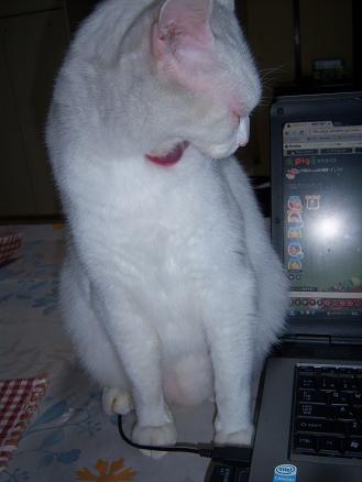 ●秋のましろしろ●ちびにゃじが来てから茶の間に来なかったマシロさんですが、夜はちびにゃじをピーの部屋に預けて茶の間を開放したらようやく茶の間にやって来て定位置で寛いだましろしろさん。相変わらずのPC好きで相変わらずの白毛虫です。毎日家の周りをパトロールして庭に侵入して来るよその猫とバトルを繰り返しています。ちびにゃじに対してもまだ許していなくて、ひゃ~ひゃ~~っと駆け寄って来て大騒ぎでじゃれつくちびにゃじから逃げる逃げる。怒ってシャーシャー威嚇してもちびにゃじは全く意に介さないので困ってしまって逃げる逃げる。ちびにゃじが大人になって落ち着いたらもう少し許すかもと希望を持っています。今はまだまだちびにゃじの隔離政策を頑張らねばなりません。●秋の青い蝶々●2年前に入手してから大分いかつく何倍にも大きくなりましたが透明なブルーの蝶々みたいな花のクロドデンドルム・ブルーウィング。この夏は何十個もの花を咲かせてその美しさを謳歌していました。秋になってもまだまだ蕾が沢山待機しています♪●秋のスリッパ●そしてこれがこの秋最高の逸品!!目に入る度に笑っちゃう~~ヽ(≧ω≦)ノ こんなに「大好き!」なスリッパを初めて購入しました~~~\(^ー^)/もったいなくてスリッパ履けません(((((^m^