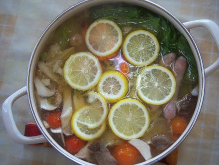 2015年の初めてシリーズ「レモン鍋」と黒糖アンダーギーのアルファものと個性派にゃじ君の耳裏返りです。●初めて「レモン鍋」作ってみました(⌒_⌒)11月の中旬にピーが「レモン鍋の素」を買って来ました。レモンと鶏肉は大好きですが鍋はどうでしょうか?鶏肉を沢山使うので、鶏肉嫌いな夫のいない日中に興味津々で作ってみました。最初に煮立てた煮汁に鶏肉を入れて煮ます。次にレタス2分の1・エリンギ2本・ソーセージ2本・庭でまだ頑張っているミニトマト4個・たまたま残っていた大きいエビ・冷凍のシーフード(エビ・イカ・アサリ)少々を入れてひと煮立ちで出来上がり!すごく簡単であっという間に出来ました。大好きな酸味で量が少ないしあっさり塩味でサッパリしていて美味しいです!!見た目も綺麗です!女性には最適だと思います。レモンとレタスと鶏肉の他には冷蔵庫にあるもので作れるのでリーズナブルです。残った煮汁はスープにしましたが他に麺を入れたり煮物にも使えそうです!とっても美味しくて贅沢な昼ごはんでした♪●黒糖アンダーギーミックスを優しくアルファ以前頂いた黒糖アンダーギーミックスは味が濃くてなかなか食が進みませんでした。それで味を優しくしようと思って残っていた粉に黒ゴマきな粉と抹茶と豆乳を足して練って焼きました。優しい味わいになって美味しくいただきました~(⌒_⌒)V●耳裏返りが平気な猫にゃじ君はピーに耳を裏返されても全く平気で過ごします。試しにピーはマシロさんの耳も裏返そうとしましたがマシロさんの耳は柔らか過ぎてすぐに戻ってしまうそうです。く~たんの耳は固くて裏返らないそうです。そしてその前にく~たんは耳に手を近付けただけで嫌がって裏返すのが難しいです。にゃじ君は遊ぶ事しか頭になくて覚醒している間は常に大人猫を襲おうとするやんちゃ過ぎる猫ですが、尻尾や身体を触られても全く気にしなくて非常~におおらかです。ちょっとショックな事があるとすぐ天井裏に引きこもって数時間降りて来ない繊細なマシロさんや、名前を呼んだだけでイライラしてシャー―ッと威嚇したり、時には廊下でコロリンと転がって突然甘え出す謎の多い気難し屋のく~たんに慣れた私達にとって何があってもケロリとしているにゃじ君は全く愉快で面白いです(⌒_⌒)今うちにいる猫達は極端の極みの3匹です。