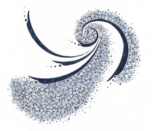 私は昨年の夏に「みくさのみたから」のワークに参加し、『たなそえる』『まことのる』『ちのみちとおす』のみっつでひとつのたまちを、持病があるので出来る限り毎日15分以上取り組んでいます。色々試した結果、私の場合は「ヒーリングコード」と「みくさのみたから」の2本立てを行う事で体調が大分良くなっていく事を実感したので、時々さぼりつつも何とか続けています。ヒーリングコードは全くの一人で本を見ながらやっていますが、「みくさのみたから」は地元のあちらこちらで集まってたまちの湯わかしをしているので何度か参加させていただきました。2度目に参加した泉の湯わかしに参加していた皆さんの話の中で興味のある内容を、いつも持ち歩く小さいクロッキーブックにメモしていた所、日記・メモ・感想文・模様・いたずら描き・予定等々の色んな事が書いてある様子に反応された方がいました。「何を書いているの?」と聞かれたのでちらほらお見せしたら、「面白い!」と言って下さったので、すぐに舞い上がる私はその気になって大きいクロッキーブックの方もあれやこれや模様をお見せしました。するとそこにいらした方皆さんが面白い・凄い・手描きなの?!と喜んで下さり、「額に入れて作品にしちゃえばいいじゃん!」「一杯描いて展覧会しちゃえば作品になるじゃん!」「名刺にしちゃえば?目の前で描くサービスとか?」などと励まして下さったので「え?娘が気持ち悪いって言うこれが?」「え?義姉さんが苦手って投げ捨てたこれが?」「本当に?本当に?!」と驚き、一層舞い上がって大喜びしました。★模様ばっかりクロッキーブック3冊目 1ページの模様「娘に『気持ち悪い』、 義姉さんに『苦手っ!』と捨てられたこの模様が(実際に言われたのは一面渦だらけの模様でしたが) 人の目に触れさせてはいけないと思っていたものが 作品になる?!!」私は非常に驚いて感激しました。身内2人に否定されても他の人で気に入ってくれる人もいるもんだ!!(長い友人で心清らかなK子ちゃんも褒めてくれたけど K子ちゃんは優しいからいつだって私を褒めてくれるもんで)それでうれしくなった私は網様だけだったものをしばし休憩して名刺を作成すべくちんたら描いてみたのですが、漢字と言うヤツは難しくてあれこれ描いているうちにどんどん逸れて行って、ひらがなで遊んでみたり好きな言葉や浮かんだ言葉を描いたりしました。そうして次の次の「みくさのみたから」の仙台の湯わかしの時に遊び飾り文字をお見せしたら、私の中から出て来た文章の「人間は思い込みだけで生きていると言っても過言ではない」が非常~~に受けました。★「人間は思い込みだけで生きている と言っても過言ではない」そしてその下に描いた「通天閣事件」に関しては何があったのか内容を話したら大爆笑で大受けしました。●「通天閣コロッケ事件」顛末●それはとあるバラエティのTV番組を観ていた我が家の3人での晩ご飯時でした。大阪の通天閣近くの歩行者専用道路を横切る時速25キロのバイクの荷台の穴にサッカー選手がシュートできるか!と言うコーナーでした。何度か挑戦を繰り返す合間にカメラは周囲の商店街や見守る人達をぐるりとなめて写していました。すると2~3回写った肉屋さんの店先のメニューの「通天閣コロッケ」に刺激されたらしい夫が言いました。夫「通天閣コロッケうまそう!」娘「ただのコロッケだよ!!!!」私 大爆笑wwww!!夫は色々見逃すタイプの人であり、娘は見逃さないタイプの人であり、間髪入れずに夫をバッサリ切り捨てた娘が最高にカッコ良くて大爆笑してしまったのでした。私が下手に反応すると夫はいじけるため大抵黙っているので、尚の事気持ち良かった~~ヾ(≧ω≦)ノ爆笑し続ける私を見た娘はぽか~んとしていました。夫「やられた」(苦笑い)娘「何が面白いの?」私「いや~見事だった!!(爆笑)」娘「そこまで?」大概飲み込んでしまう私なのでバッサリ切り捨ててくれて爽快だった~ヾ(≧ω≦)ノの気分は娘には理解できないらしかったです。それがまた可笑しくて笑いが止まらなかったのでした。と言う事件でした| ̄m ̄) その話しがたまちの湯わかしに集まった皆さんの心をくすぐったらしく笑いがいっぱい生まれて楽しい思い出の文字になりました。私の中に固まっていた私から生まれた「気持ち悪い模様」のイメージが段々と良いイメージに塗り替えられて来て幸せな思い出のものになりました。ありがとうのありがとう~~(⌒_⌒)ノシ★「通天閣コロッケ事件」