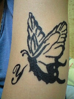 ジャーン!! わたくし ついに タトゥー彫っちゃいましたぁ♪と、いいたいところですが…↑はタトゥーではなく、ボディーペイントです。メイク落としで消せますが水や汗には強いです完成まで1時間くらいかかりましたサイズは携帯電話より少し大きめお値段は2,000円でした本物そっくりで大満足しばらくみとれてました祖父母には ヤクザみたい…と笑われてしまったけど妹や同僚には大好評でしたタトゥーしてる人がめったにいない この田舎でこんな素敵なボディーペイントができるなんて超~感激また描いてもらう予定です本物のタトゥーを彫る覚悟はありませんピアスの穴すら怖くて開けられないんですもの絵を描いてもらってるあいだ、女の子向けタトゥー雑誌 を借りて読んでましたタトゥーを楽しむオシャレな女の子スナップや彫ってくれるお店の紹介などが載ってておもしろかったです