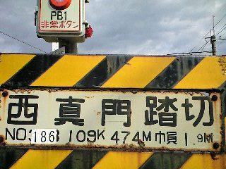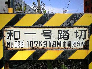 ここから鴨川市 186 西真門踏切を渡ると お花を育ててるビニルハウスしかない 遮断機も警報機もピカピカ★08年10月製造と書かれているとまれみよの看板や踏切名のついた柵などは昔のままみたいすぐそばの家から おじいさんがでてきて声をかけられた『踏切好きなんかい?』『あっ ははいっ! ふっ踏切 すきなんデスっ』しまった どもっちゃった不審者だと思われたらどうしようしかし おじいさんは私を怪しまず踏切についていろいろ話してくれたこの踏切は数ヶ月前まで警報機も遮断機もなかったしかしカーブで見通しが悪く事故がよく起きたので警報機と遮断機が設置されたそうだでも夜中3時頃に回送電車が走るときは警報機が鳴らないんだとかずっと踏切のそばに住んでるので電車が通る音は平気だけどまだ警報機の音には慣れてないから警報機が鳴りだすとビックリしちゃうよって笑ってた 187 真門 とまれみよの看板があったここも昔は警報機など なかったのかな? 188 のだ 看板は いずこへ…?