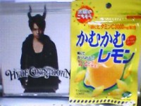 HYDEくんは血文字を残して、まだこの時点で戻ってきてません。明日早いので寝ます。オリコンのシングルウィークリーチャート、「COUNTDOWN」1位おめでとうo(^-^o)o(^-^)o(o^-^)oお祝いに「かむかむレモン」買いました(え?)デイリーはちょっと落ちちゃったけどね・・・それにしてもNANAの歌姫は粘ってますねぇ・・・「ENDLESS STORY」のほうがちょっと上なのが気になるけど。まああの映画での使い方がいいからね~「かむかむレモン」の写真の前に、こんなの撮ってありました。またイタイことしちゃったけど、ナイトメアのコミック本をみつけたので、東京ドームでプレゼントしてしまったんでした・・・で、今、録画していた「トゥルー・コーリング」を見てたんですが、いつもエンディングまで見ないで止めてしまうので知らなかったけど、エンディング・テーマが土屋アンナちゃんの「Somebody Help Me」。ずっと日本用じゃなくてアメリカのそのままの曲だと思ってた。時々口ずさんでたんですよね~(驚)カッコいい曲ですよね~(*´∇`*)アンナちゃんのHPで視聴できます。そういえばSpin AquaのCD・・・どこだろ??どこかにあるはず( ̄‥ ̄a;)いろんなモノが行方不明の部屋なのです(困)