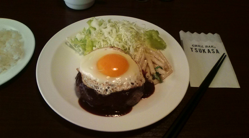 前の日には甘酒横丁で有名というお豆腐屋さん「双葉」の食堂(?)でランチ。色々な豆腐料理で悩んだ結果、「揚げ出し豆腐定食」に。かなり大きい揚げ出し豆腐2つに、冷や奴までついてて、お腹いっぱいに。あと2日の人形町を思いっきり堪能してますで、そこにあったフリーマガジンに載っていた「グリルツカサ」に行ってみました。1階が満席だったので、しばらく待った後で2階に案内されました。杖ついてるんだから、大丈夫かとかは聞いてほしかったかな・・・まあ調子いいからいいけども。で、2階の個室で一人で食べることに。なんかレトロな個室で雰囲気あったけど、窓が開いていて下の厨房なのか周辺のお店の音なのか、かなりうるさかった・・・暑くなかったら、煮込みハンバーグにしたかったとこだけどおいしかったです!やわらかいハンバーグだったので、お箸でつかむと崩れてちょっと食べにくかったけど。夜だけあるという、オムライスも食べてみたかったな~