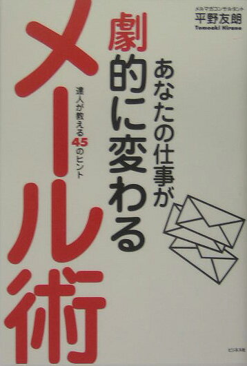 メルマガコンサル平野友朗さんの「あなたの仕事が劇的に変わるメール術」を読みました。ビジネスでメールがこれほど活用されているのに、中々いいメールの本は確かに出ていなかったかも知れません。構成も読みやすく、45のヒントも「すっ」と入って来ます。書いてあることはある意味「当たり前」のことなのですが、この「当たり前」の事が出来ていない人は多いでしょう。特にこの言葉いいと思いませんか?「メールに必要なのは「こころ」なのです!」(前書きより)メールを扱う人はぜひ目をお通し下さい。▼あなたの仕事が劇的に変わるメール術 平野友朗(著)