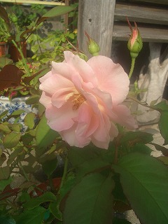今朝は秋のように涼しく感じました春には一輪も咲かなかった 勿論新芽さえ出なかった「ブラックティ」葉っぱがこんな感じにクルンっとなったまま。根詰りかな・・・?半分諦めて ちょっと日陰に移して様子を見る事に。その内 新芽がでてきて やっと咲きました今朝は少し日に当てようか・・・と。これから 暑くなるのかな~~後姿に哀愁漂う。流しの下の掃除でもしましょ。