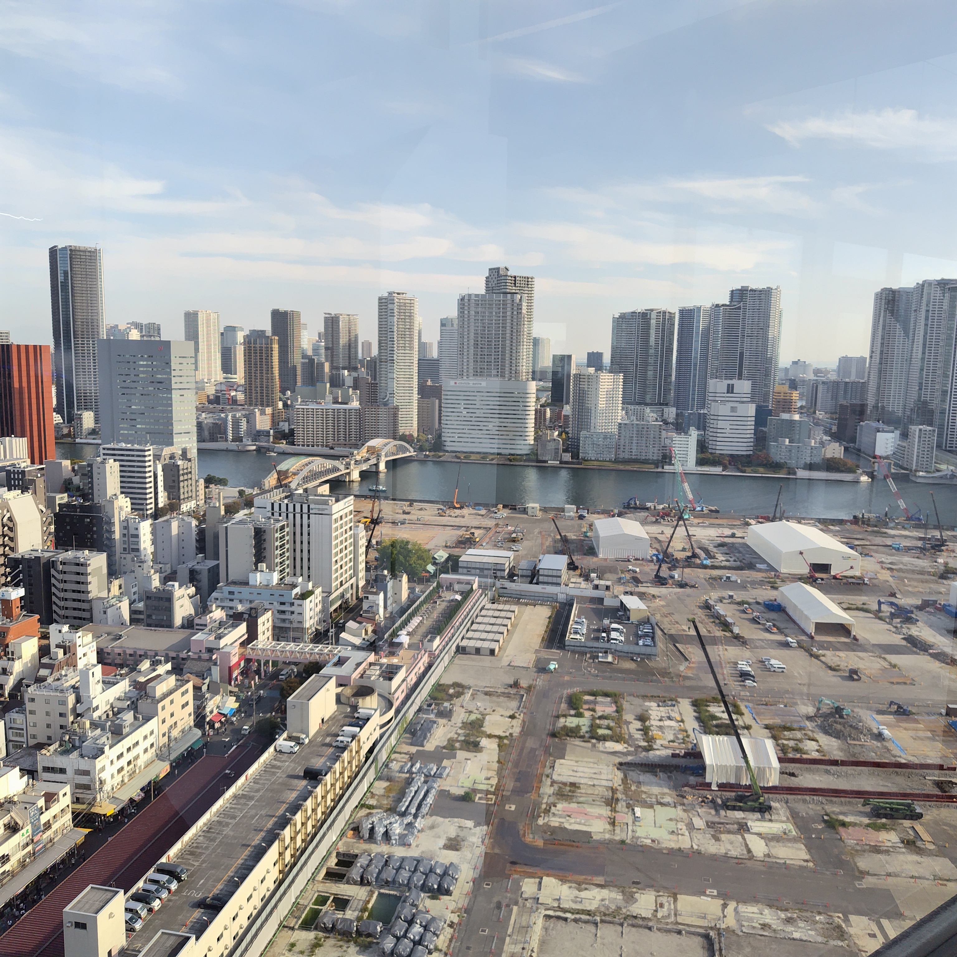 病院から撮影した景色。築地市場の跡地と築地場外市場。