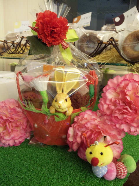 こんにちわさてさて、皆さんはGWはいかがお過ごしでしょうかお天気も良い日が多くお散歩したくなってしまいますそんなこんなで、ICHIRINにもたくさんのお客様に来ていただけている毎日ですいつもありがとうございます子供の日当日も沢山のお客様に来ていただいて、こいのぼりギフトや子供の日ケーキもご用意いたしました。また来年もお客様に満足していただけるよう子供の日などイベント限定のケーキやギフト、がんばりますとシェフが言っていましたそして。まだまだおわってませーんGWには母の日がやってきますよもうすぐ、、、、(5月8日)ということで。母の日限定ギフトがお店に並んでいますよ一押しはカーネーションと大人気ウサギちゃんの器に入った焼き菓子セットですっかわいいですよねぜひお店に見にきて下さいまたそのほかにも母の日限定マカロンロリポップが数量限定で販売マカロンロリポップシリーズ第三弾ですご存知の方もいらっしゃるかも知れませんが、クリスマスやバレンタインの時もそれぞれ販売いたしまして大人気でした(おやおや。。。またまたフレンドリーいもむし君も一緒に写ってしまいましたね笑)母の日限定マカロンはバニラのバタークリームとイチゴのクリームをサンドしたかわいらしいピンク色で、甘酸っぱくて美味しいですよまた、母の日ケーキも販売しております。ふわしっとりICHIRIN特製スポンジにイチゴのクリームで見た目もCUTEなケーキですご予約も受け付けておりますのでぜひお待ちしております。