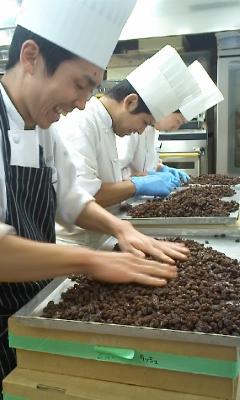 新年あけましておめでとうございます本年もICHIRINをよろしくお願いいたします。クリスマス、年末年始、多数のお客様ご来店ありがとうございましたまた今年も多くのお客様に喜んでいただけるようがんばってケーキ作っちゃいますただいまICHIRINではいちごフェアを開催しております。みんな大好きいちごいっぱいです!!中でも人気のフレジエがオススメですピスタチオのバタークリームといちごが丸ごとゴロっと入ったケーキですまじうまいっすシェフオススメぜひお試しを!そんなこんなで、厨房ではいちごとまったく関係のないレーズンの小枝取りをみんなで仕分け中・・・一個一個手作業ですそれをオーブンで少し乾燥焼きさせてからラム酒に漬け込んじゃいます最低でも2ヶ月寝かせてます・・・はじめはアルコール臭いのに2ヶ月たつとあら不思議!!美味しいラムレーズンのできあがりそれをパウンドケーキなどのレーズンとして使ってますこちらもオススメ!今日のところはこの辺で次回はバレンタイン情報お伝えします