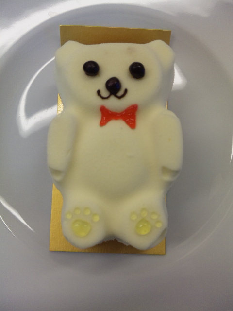 がイチリンにやってきましたその名も、、、、夏のシロクマ君ですレアチーズケーキに下のくまの生地にはパイナップルがはいってます見た目も涼しげおいしいーよーシロクマ君は夏しかお目にかかれないので是非食べてみてください(冬には北極に帰っちゃうのです、、、、、)
