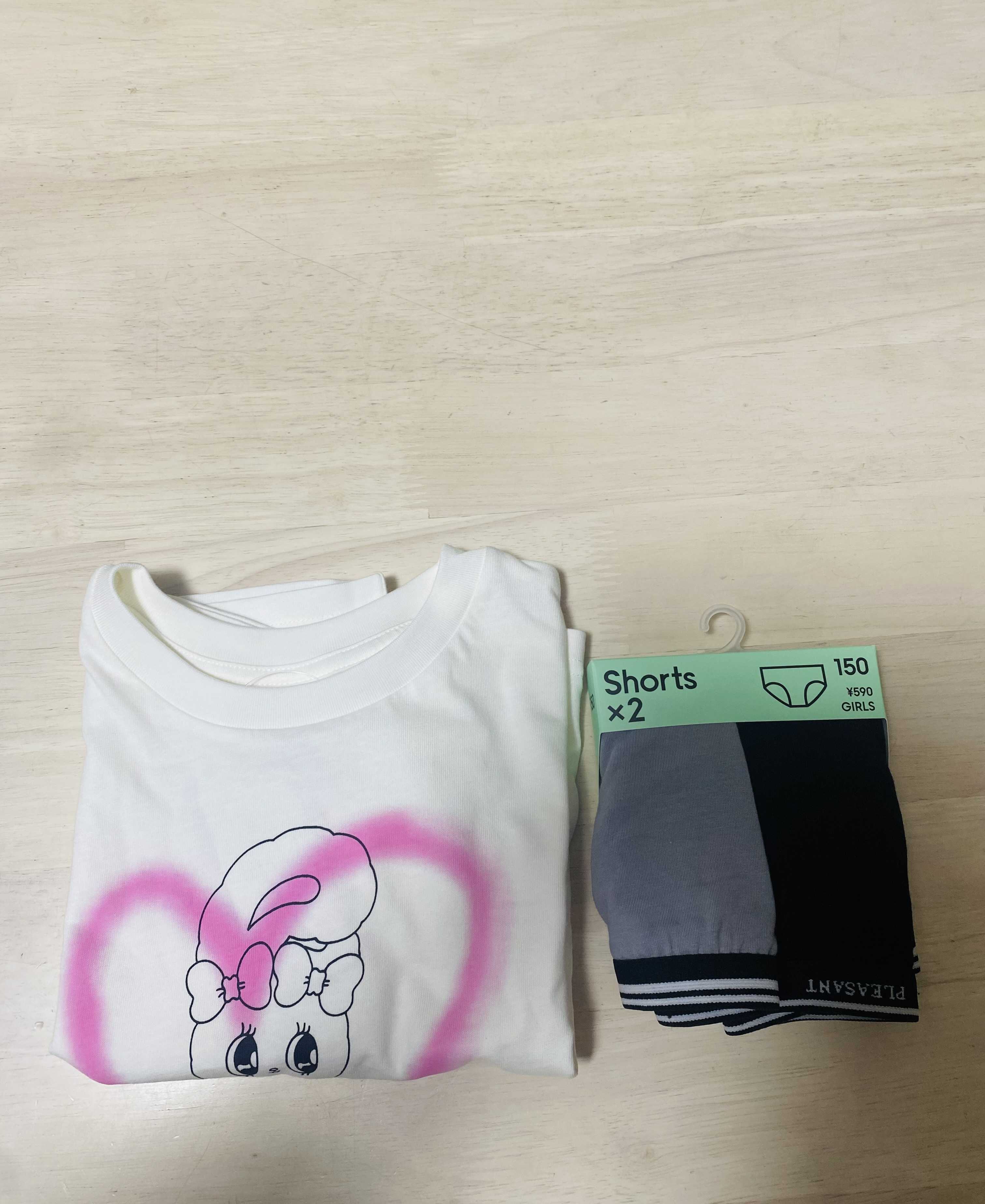 娘がGUのエスターバニー欲しがっていたのでやっと買いに行ったらだいぶ安くなっていました😆☆GIRLSクロップドT エスターバニーJR Sサイズ(140)・オフホワイト 990円→値下げ390円☆GIRLSショーツ2P 150マルチ 590円下着は地味カラー欲しいって言っていたのでついでに購入しました。こちらのよく履いてます。かわいいけど、目立つから嫌みたい。履き心地は気に入ってるのですが。本日クーポンでお安くなります。エスターバニーのTシャツ。短丈です。袖長めだったのでジャストサイズにしちゃいました。暑いからすぐ着ます。他にもエスターバニー商品値下げしてるのですが、店頭になかったのでオンラインで注文しようかな。まだまだ欲しいのあるらしいです🙃そういえば娘、エスターバニーのリップも持ってます。安ーい!435円。先買いないので買っておこうかな^ ^