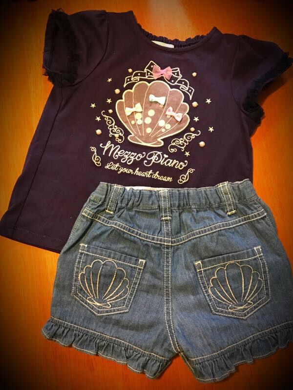 こちらは去年の着画。94センチ。チュニックではなくミニ丈ワンピ?同じショーパン穿いてますがチュニック長くて隠れちゃいました。