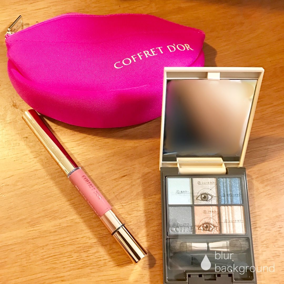 楽天24の半額クーポン利用で購入したコフレドールのポーチ付きリップ・アイシャドウセットが到着しました
