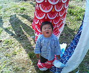 昨日こいのぼりの木を立ててもらったので朝からせらぽんとこいのぼりを上げました。去年は6ヶ月で全くわかってなかったけど・・・今年は大きなこいのぼりに、初めはびっくりどんどんとお空に登っていくと、「お~~~」と興奮してました。で、抱っこ抱っこ抱っこしてこいのぼりを触りたかったみたいですそれから友達のあおちゃんとさらぽんと近くの桜祭りに行ってきました。たくさん食べるものが売っていて、ウインナーや串かつ、たこ焼きetc・・・いっぱい買って食べました。口のまわりコテコテ!!私のいとこ達も来ていてせらぽんたちはお姉ちゃんに遊んでもらって嬉しそう芝滑りも出来て「わ~~い」と大人もまたまた楽しんでしまいました。桜祭り最盛期!!今年はせらぽんも少しわかるようになってきたので、桜祭り、お花見 いろいろ楽しめてよかったよスキスキ2人組