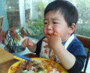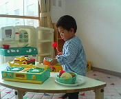今日はママ友達と子育て支援に遊びに行ってきました。やっぱり話題は昨日の地震のこと。怖かったし、日曜日なのでパパがいてよかったって。今日は5組の親子今日気になったことが・・・せらぽんおままごとコーナーが作ってもらってあるんだけど2時間ぐらいの3/4はそこのコーナーで遊んでた朝ごはん食べていったのに「マンマ」「マンマ」ってフライパンにおかず入れて炒めたりママ友達に差し入れしたり・・・食べ物関係からなかなか離れないのよあんまりリアルに遊んだりするからちょっと引いてしまったみんながベビーカーに乗って散歩に行くのに「いやいや」と首を振って水道で野菜洗ったりしていた。集中して遊べるようになったのは嬉しいけど・・・ねぇ・・・どうなんΣ( ̄ロ ̄lll) 見て!!この真剣な顔食べるの大好きせらぽんだから仕方ないかな・・・こうなったらキッチンセット買ってあげよかな。。。パパに相談しましょ。。そうしましょ。。