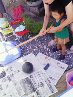 お久しぶりでーす(*´∀`*)ゞ 専業主婦の私も夏休みをもらって1週間実家でのんびりしてきました。大好きなじーじとばーばと毎日楽しそうなせらぽんを見ながら私は充実した休日を過ごしました今日から本業のブログもがんばるぞ~~~~実家では主にプール。私も一緒にプール水の中に入ると体温が下がって気持ちいい(´ω`*)ネー 昼からは昼寝ZZzz…(。-ω-)。。ooO((【・:*:・夢・:*:・】))起きたらまたプールせらぽんも私も真っ黒だわ。夏の思い出 すいか割り~~金太郎(●>ω<●) ぶどう狩り。。。去年のお盆は一人歩きが出来るようになって嬉しくて・・・でも、こっちはヒヤヒヤドキドキだった。今年は一人で遊んだり、ばーばに甘えてくっ付き虫。会話も少し出来るようになったから、みんなを笑わせて、成長を感じたよ。帰り際は淋しそうに何回も「じーじ、ばーば バイバイ」って車で言いながら、、葛藤していた。そんなせらぽんも今日で1歳11ヶ月。あと1ヶ月で2歳になるんだ~~~。ホントに嬉しいよ゚+。:.゚ヽ(*´∀`)ノ゚.:。+゚ 楽しみだね~~~。。