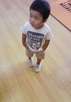 今日は子育て支援の日でした。昨日は昼寝をしなかったせらぽん。昨夜の9時から今朝の9時前まで爆睡(★´-ω-).。oOO グゥグゥ一日の半分を寝て過ごしてる・・・寝る子は育ってね。今日は9月生まれのお誕生会と作って遊ぼう!!!の日でした。そうなんです。ぼくちゃんお祝いしてもらったんです本当はもう少し先だけど、、お椅子に座って、、終始緊張してます。1歳児でもこんなに緊張するんだね。顔がこわばってました。9月生まれはみんなで5人。うち、2歳になる子は3人。せらぽんの番になって先生「こんがり焼けたお友達、お名前は??」せ『・・・・』私「○○せらぽんです。」先生「いくつになったの?」せ『下を向き、は隠す』私「2歳です」先生「いつもは出来るのにね~~」先生はよく見ているな~~と思った。先生「どんな男の子になってほしい?」私「優しくてみんなに頼ってもらえる人」先生「せらぽんなら頼られそうだね。」って感じで質問が終わった。首飾りをかけてもらったり、歌を歌ってもらったんだけど、緊張しすぎて疲れたみたい。なんて、ナイーブヾ(  ̄▽)ゞ それからは手作りおもちゃを作った。(ほとんど私が・・・)せらぽんはゾウさんの顔と体のジロジロ・・・あと、シール貼り。出来上がって廊下1週したら興味はなくお外でミニカーに乗ったり、砂場で遊んで帰ってきました。帰ってきてから玄関でちゃんと出来てるでしょ!!!
