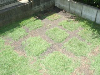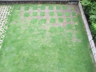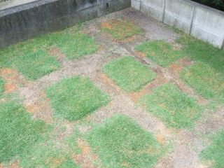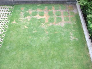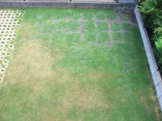 今日も暑かった・・・。帰ってくるとやはりエアコンの効きが悪く打ち水をしました。これは、良いですね 電気代の節約にもなるし すぐに涼しくなるし↓今日の芝生画像です北側の日当たりが良い場所の芝生が元気が無いような・・・。どうしましょう・・・(~ヘ~;)ウーン考え中