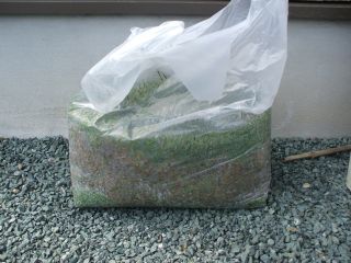 先日のサッチング後のサッチかす及び芝刈り後の芝かすです袋にまとめると多い量には、見えませんが、けっこう多いです。今朝も芝生にコガネムシの幼虫を1匹発見合計69匹を駆逐しました。明日は、昼から得意先の30周年記念パーティーがある為午前中だけ芝庭を触れます。何をしようかな・・・。