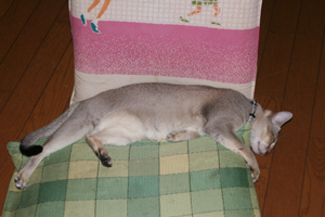 ネコってこんな格好で寝ます? 部屋に入ってみたらこんな格好で寝てました! 暑い~本当に暑い!7月でこれですから8月になれば40度以上に何日くらいなるでしょうか、今から心配です! でも、山梨は朝晩が涼しいから助かります! さて、今後の予定ですが、8月は富士吉田の「吉田の火祭りロードレース」で10キロを走り、9月は予定があわず今の所予定は無いのですが、9月16日の山梨市の巨峰の丘マラソンに知り合いの女性が初挑戦をするので、旦那が友人の結婚式で付き添いが出来ないので私がサポートする事になったので一応状況に応じて伴走しようかと考えています。 10月は28日の諏訪湖マラソンでハーフ、11月は25日の日刊河口湖マラソンでフルを予定しています・・・頑張って走りこまないと!