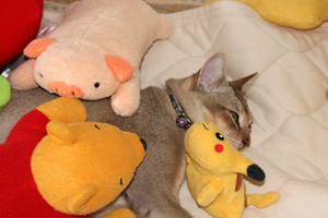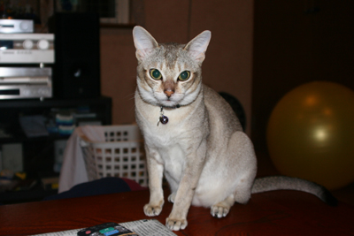 月齢できちんとえさを計測してあげていたのですが、すくすくと育ってしまいました!今体重は3.8キロ!室内飼いだから運動も室内でさせているんですけど・・・でも、かわいいでしょう!ぼく、平成17年7月26日生まれのマイキーです!